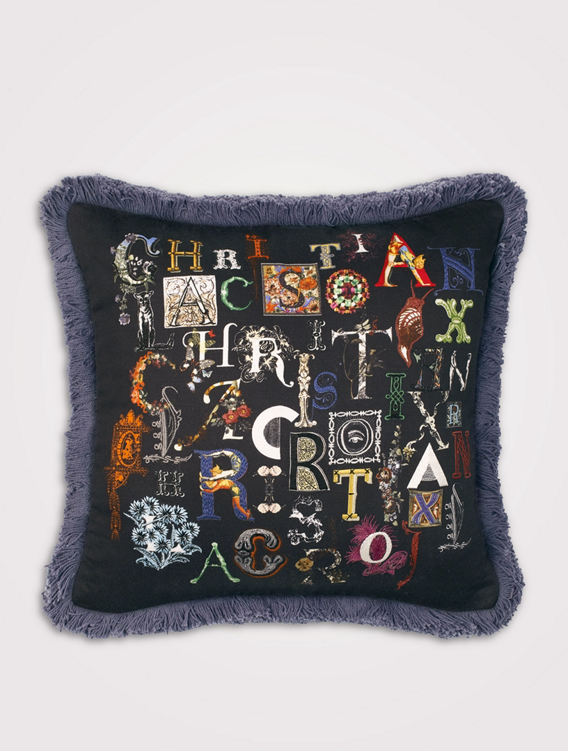 Framed with thick fringed edges, this cotton sateen throw pillow features a signature CHRISTIAN LACROIX logo letter motif with embroidered highlights.